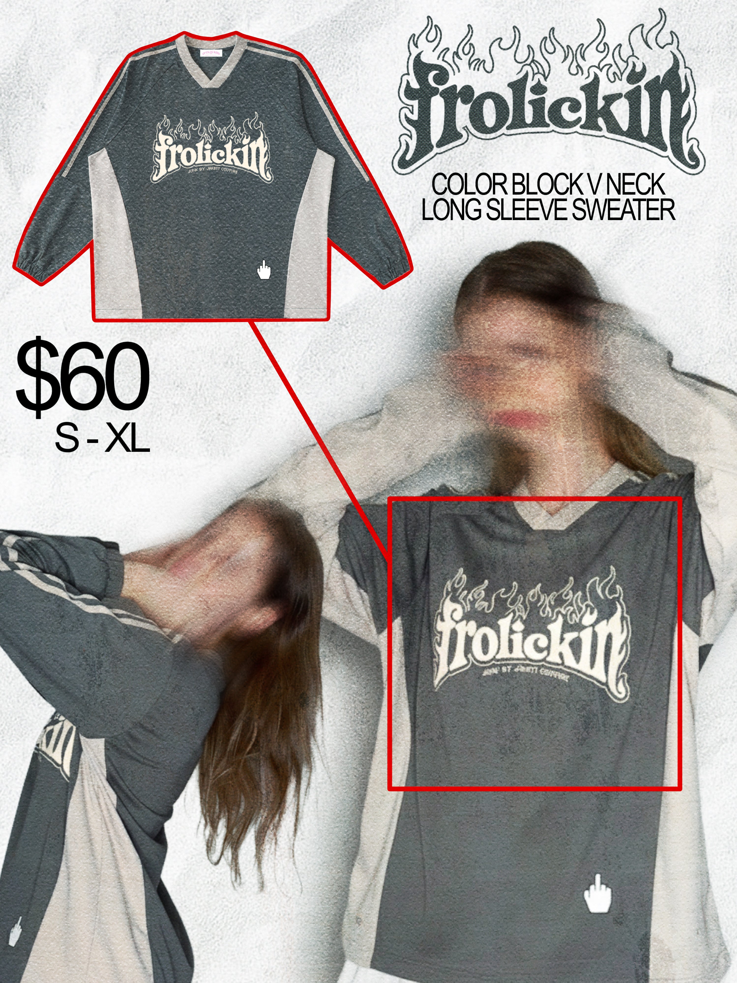 Color-Block V-Neck Long-Sleeve T-Shirt